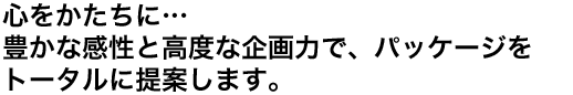 “創造と感動で価値を生み出す事業活動”を理念に、時代の鼓動を感じるハートと、マーケティングという頭脳、そして技術の腕で、市場へのお客さまのダイナミックなアプローチをトータルにお手伝いします。